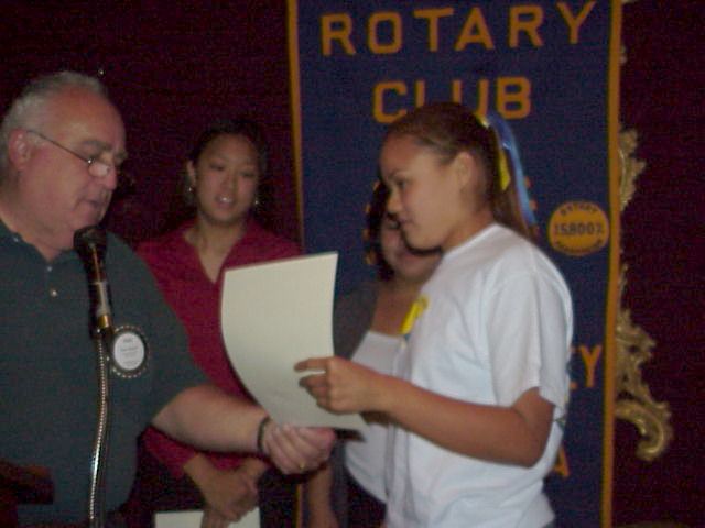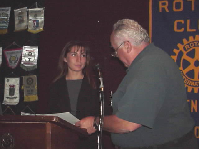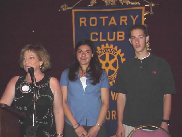 Donna Dawson is the longtime interact advisor at Pioneer High School who introduced the scholarship winners from Pioneer High Interact; Monica Lozano and Mathew Pryor