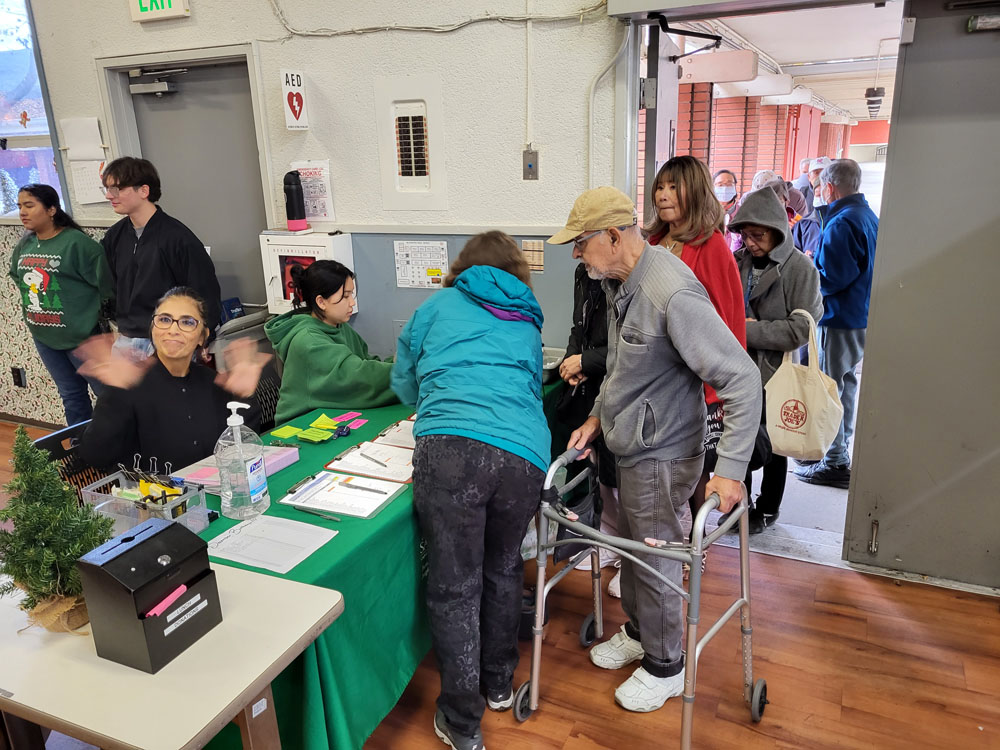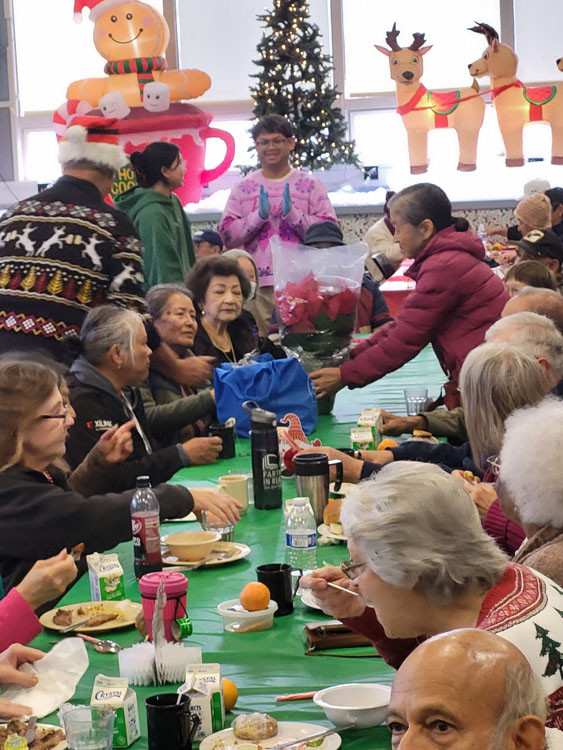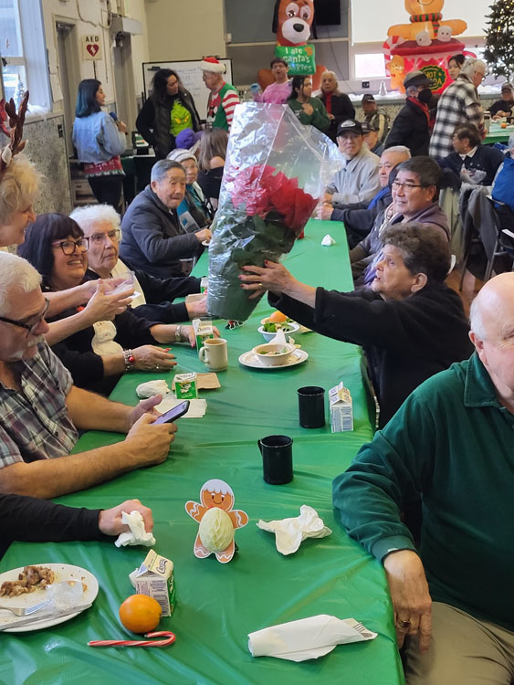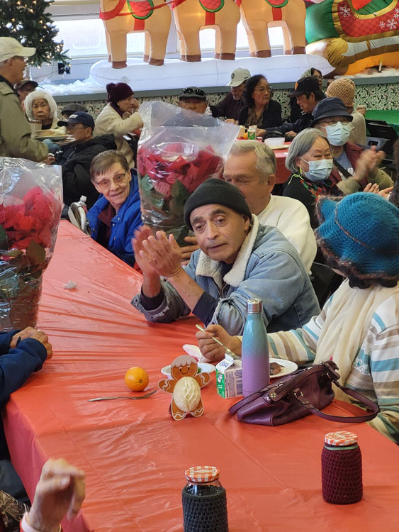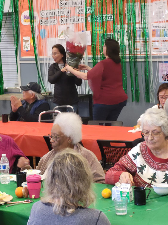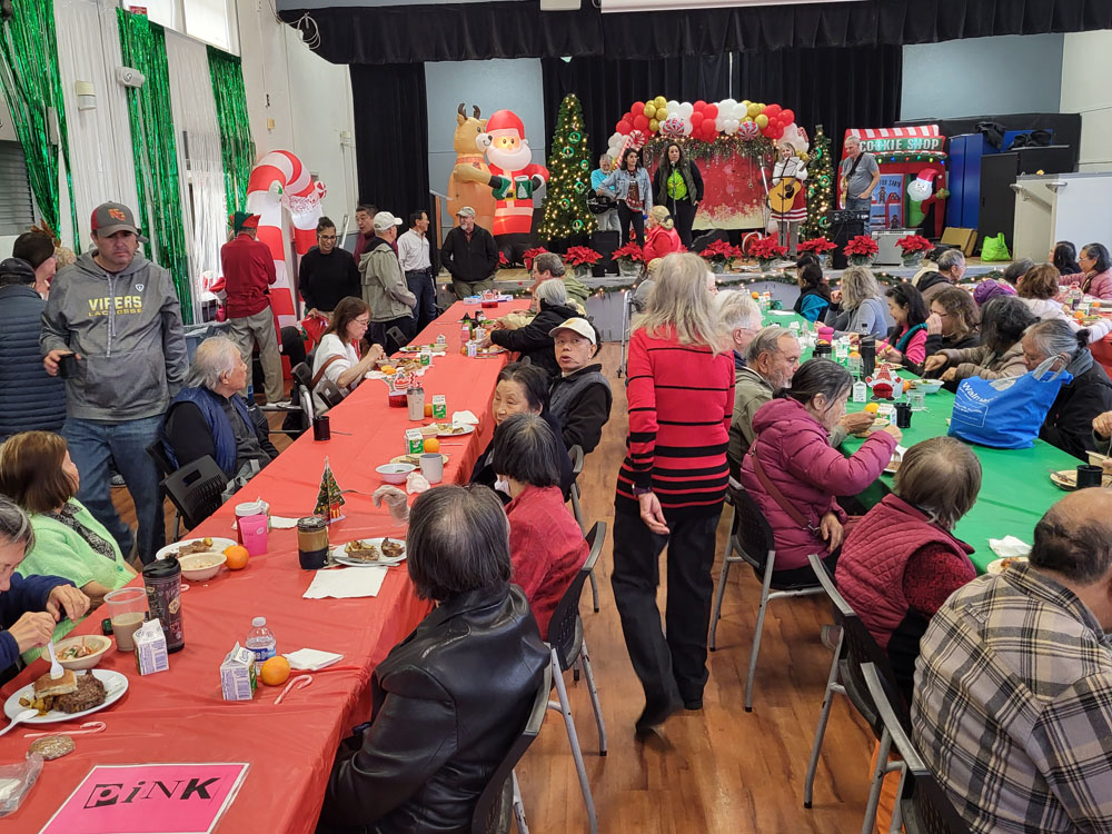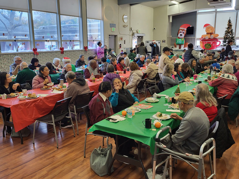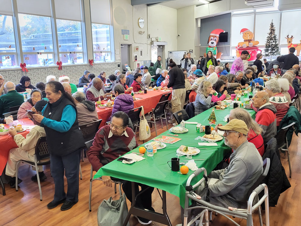 Approximately 120 seniors enjoyed a streak lunch prepared by the Almaden Valley-Willow Glen Rotary Club and the Southside Community Center. Thanks to Trung Ho, YMCA members and the Rotarians along with the staff at the Southside Community Center for a very successful function. Also poinsettias donated by Paul Uenaka were handed out to the lucky winners.