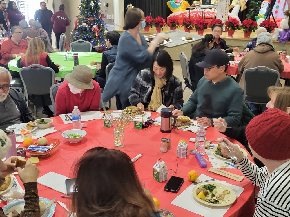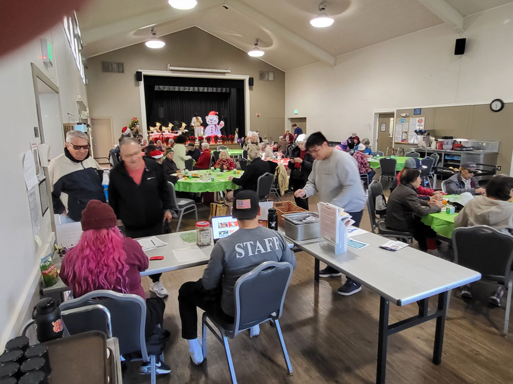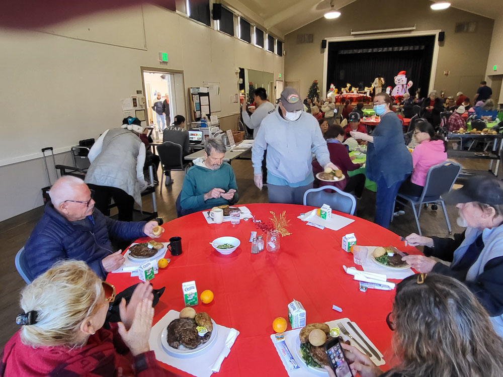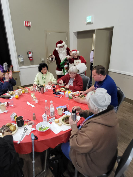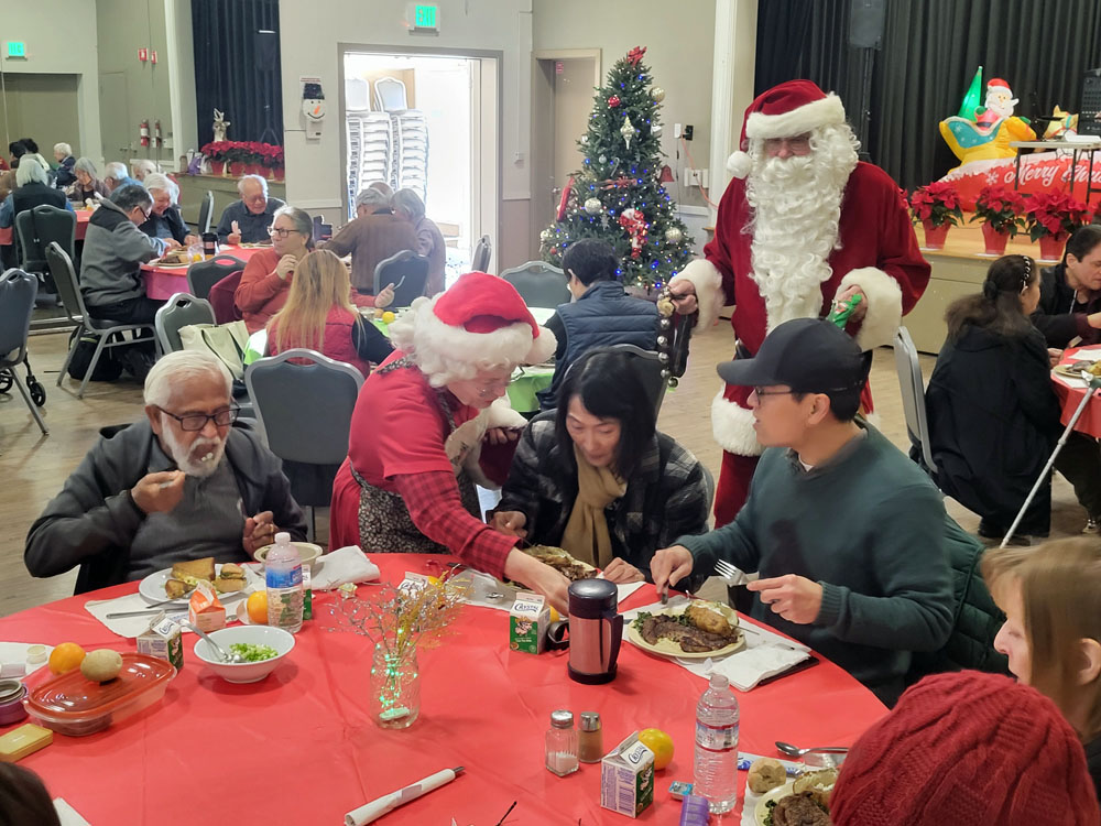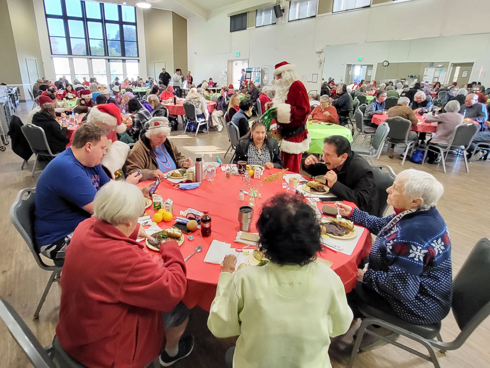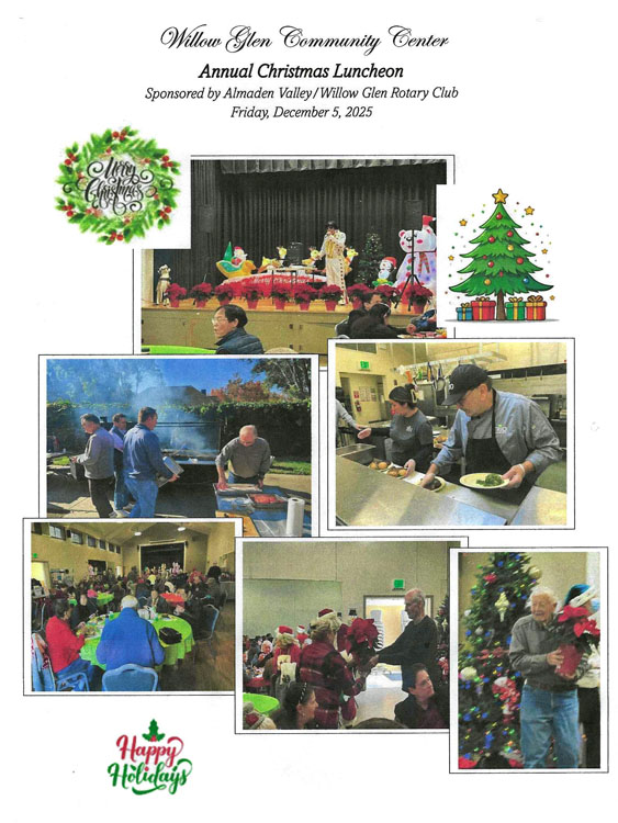 Approximately 75 seniors enjoyed a steak lunch prepared by the Almaden Valley-Willow Glen Rotary, and the Willow Glen Community Center. Spreading joy at Willow Glen Community Center! Thanks to President Ken for organizing, BBQ Crew Fred and Bob G for their help, our gals Wendy, Emilie and others for making the seniors feel so special and Paul Uenaka for the stunning poinsettias from Kawahala Farms! Special guests Santa, and Mrs. Claus, made it a festive afternoon. Grateful for wonderful moments with our seniors!.