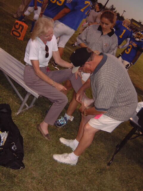 The game is over. It was an exciting game with the final score of 24-17 in favor of the North. And fun was had by everyone. Charlie and Lucy Wedemeyer Jim is the lucky guy I think there was tussle in the stands