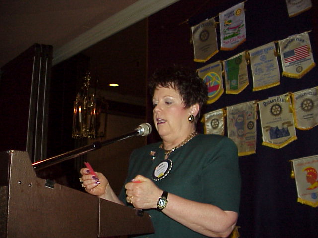 Club Service II Director Marianne McCarthy gives her report at a Club Assembly