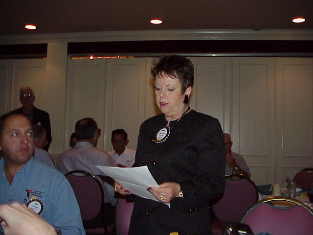 And our incoming President for 2000/2001 is Angie Hassler. She's probably telling us "BRING IN A NEW MEMBER!". As you can see, John Remy is listening intently.