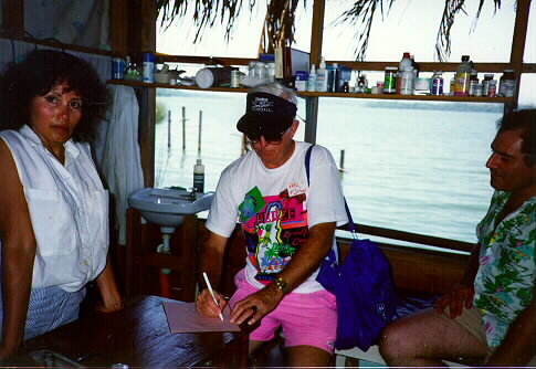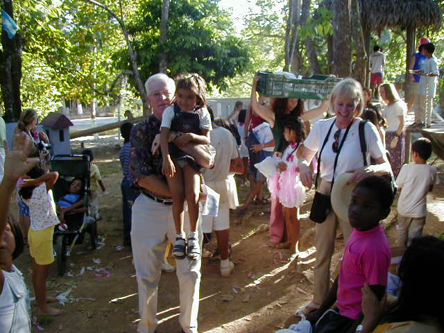 Earl with Angelina de Galdamez, the Director and Dr. Arturo Cazalli, a part-time volunteer. Check out the PINK shorts. |