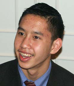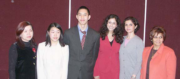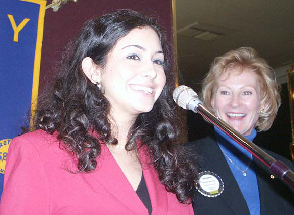 SPEECH CONTEST 2004Deena Shakir won the District Speech Contest!!Bruce Bondelie conducted this year's speech contest. We had 3 contestants from Leland High School:Deena Shakir, Grace Chang, and Caohuu (Ming-Daug) Su-be. Providing moral support were Deena's mother, Kamila Shakir, and aunt Alaa Alhadi, and Grace's mother, Jenny Chen. The speech theme was "Lend A Hand, It's All About Teamwork" and incorporated at least one of the principles of the 4-Way Test. All contestants gave excellent speeches. The winner, Deena, is a senior and will attend Harvard or Stanford next year. She will now if she succeeds go on to the Area, Regional and District contests.