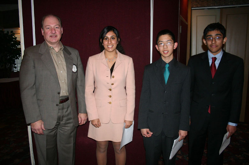 SPEECH CONTEST 2008Congratulations to Ed Lacina for an excellent Speech Contest. Our judges were: Angie Hassler, Phil Wagner, Ed's Guest-of-Rotary, and Eric Crane, Communications Manager for San Jose Council Member Nancy Pyle. The six contestants from Leland High School were: Teddy Truong, Danielle Marinisik, Elizabeth Yee, Melody Rasouli, Ryan Kuo and Kairav Sinha all gave excellent speeches.